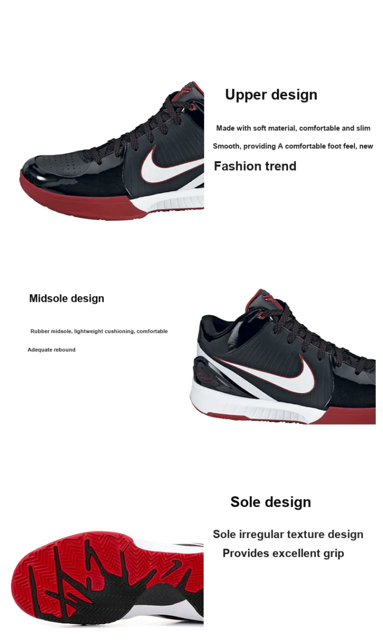 Nike Zoom Kobe 4 Амортизаторы Slip-resistant Низкий Топ Баскетбольные кроссовки Мужские Черные Красные