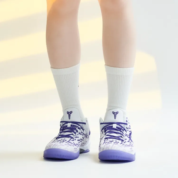 Nike Kobe 8 Амортизация Износостойкий Низкий Топ Детские Баскетбольные Кроссовки Белый Фиолетовый