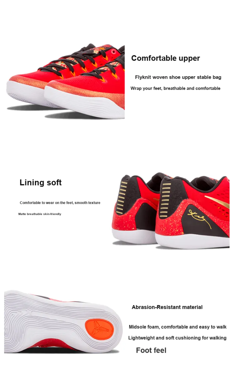 nike Kobe 9 EM XDR Китай Kobe 9 Нескользящий Легкий Низкий Топ Баскетбольные кроссовки Мужской Университетский красный