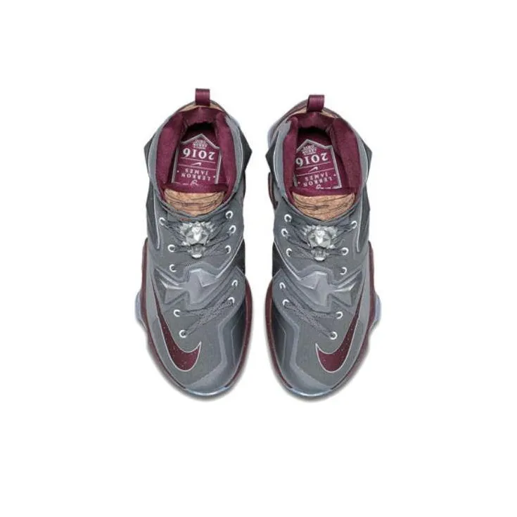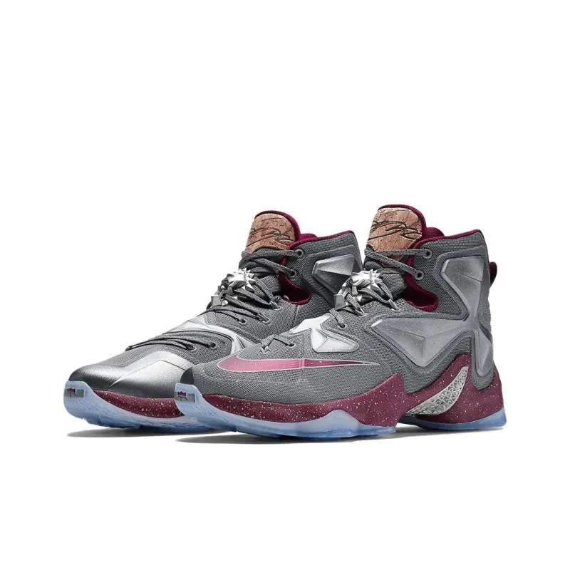 nike Lebron 13 Opening Night Джеймс 13 Нескользящий Легкий Высокий Топ Баскетбольные кроссовки для игры Мужской Серый Красный Серебряный