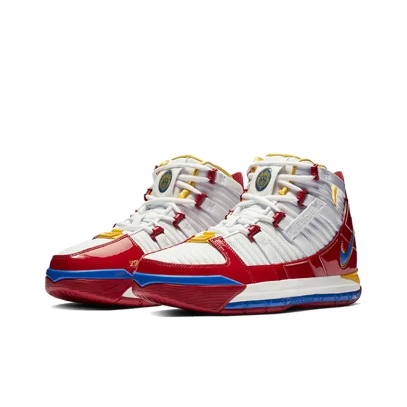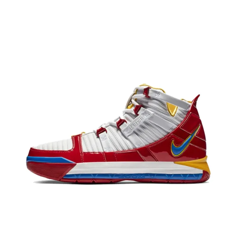 Nike Lebron 3 PE Супермен Джеймс Non Slip Lightweight MID Топ Винтажные баскетбольные кроссовки Unisex White Red