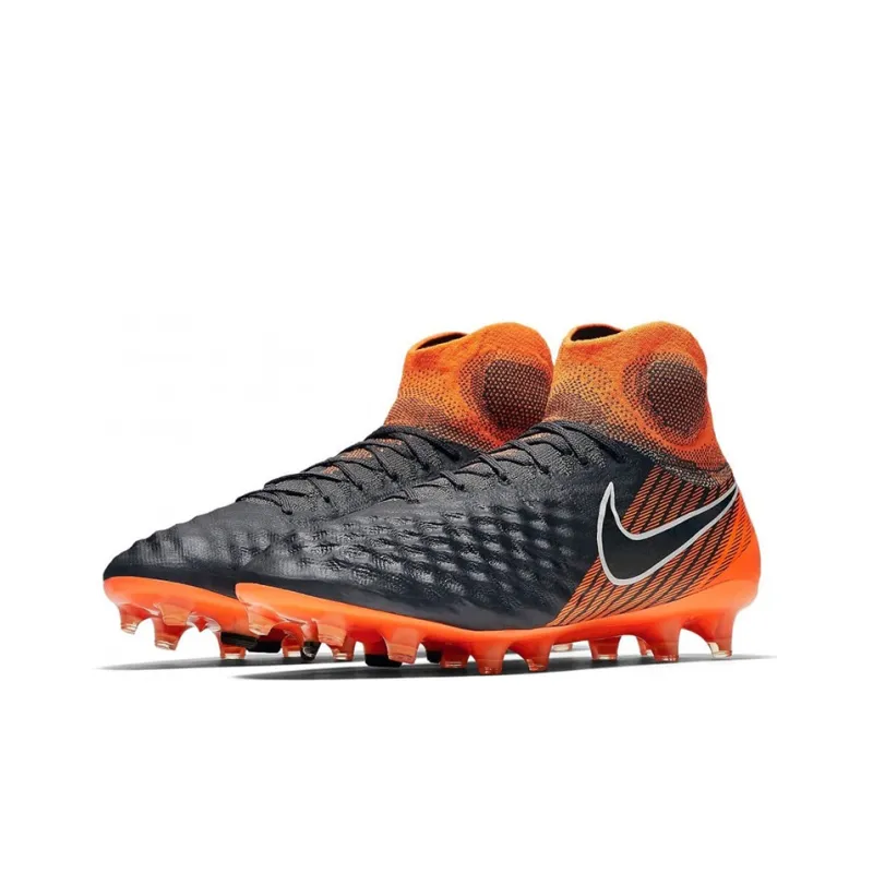 Nike Magista Obra 2 FG Твердый Грунт Амортизаторы Уменьшение Ударов Противоскользящие Устойчивые к Износу Футбольные Бутсы Мужские Черный Оранжевый