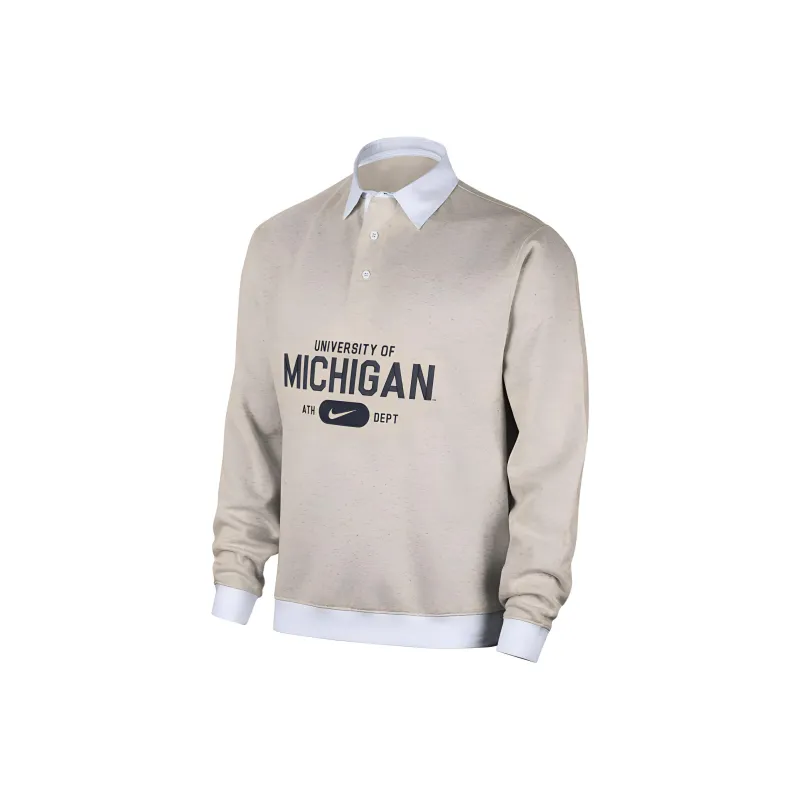 nike Michigan Club Fleece Поло Мужское Березовая древесина Смесь Цвет Белый Коллегиальный морской синий