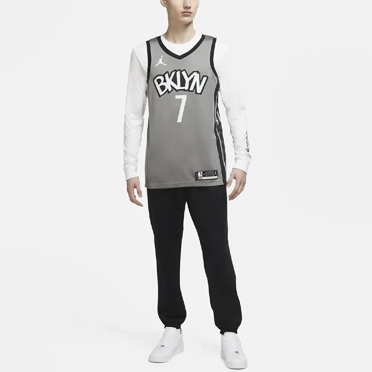 Jordan Brooklyn Nets Баскетбольная Джерси Мужская Серого цвета
