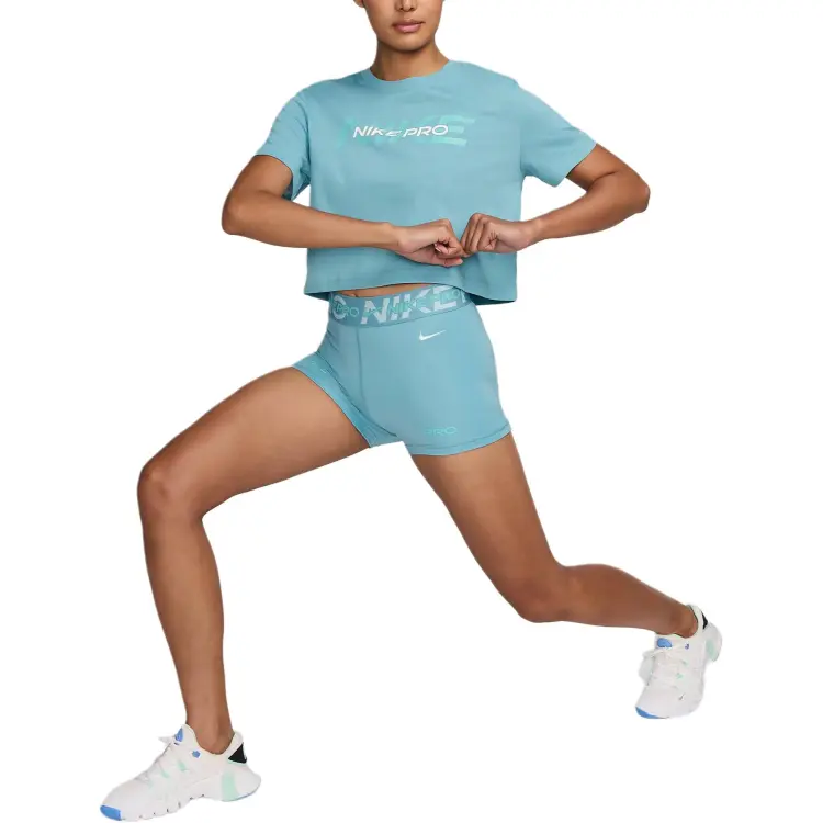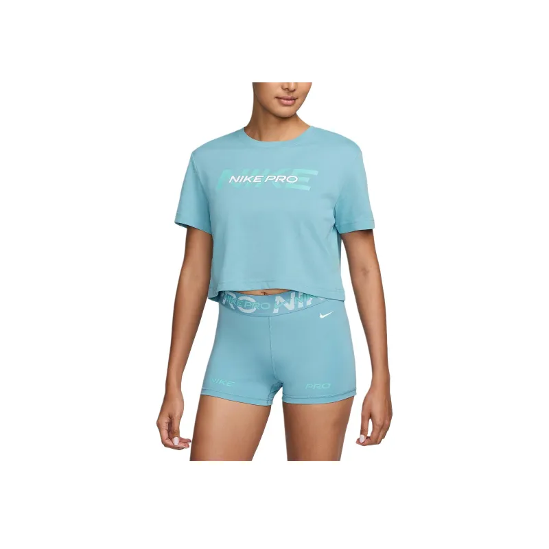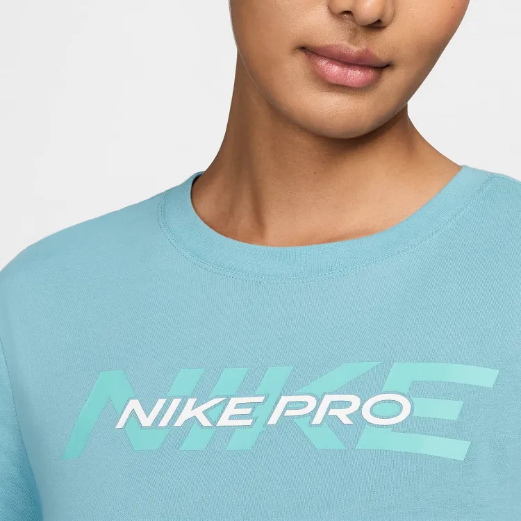 Nike Pro Стандартная футболка Женская Бирюзовый Деним