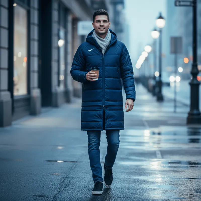 Модель удлиненного кроя обеспечивает полное покрытие и повышенную теплоизоляцию. Капюшон не только усиливает защиту от холода, но и придает образу непринужденный стиль.