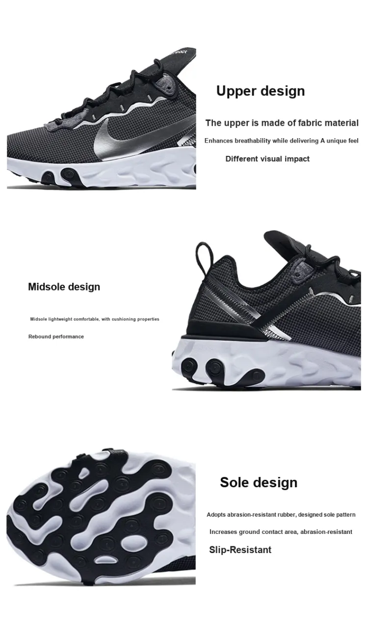 Nike React Element 55 Low Топ Беговые кроссовки Унисекс Серый Серебряный