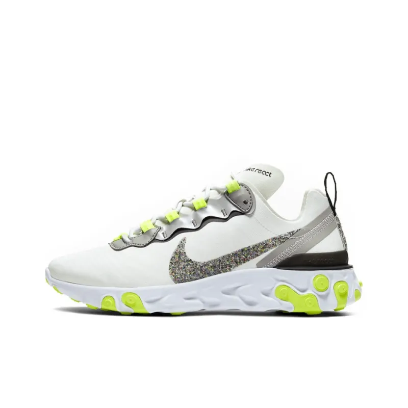 nike React Element 55 Нескользящий Легкий Низкий Топ Беговые кроссовки Женские Белые Неоново-желтые
