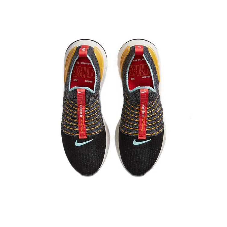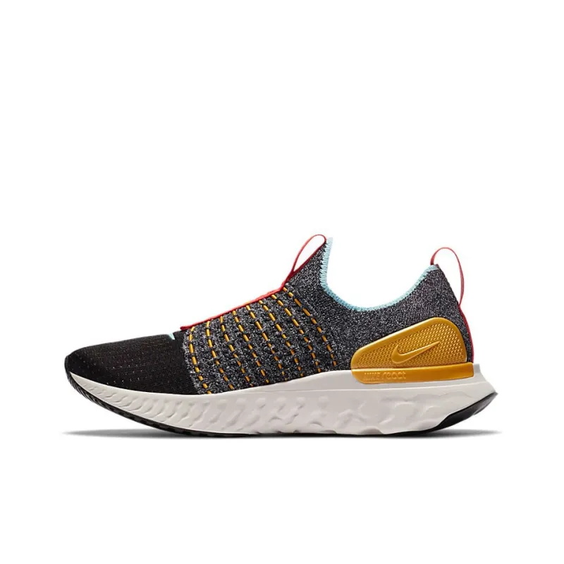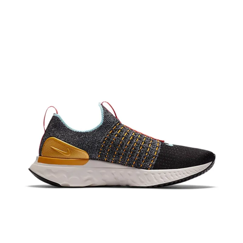 Nike React Phantom Run Flyknit 2 Амортизаторы Slip-resistant Низкий топ Повседневные беговые кроссовки Женские Черный Желтый