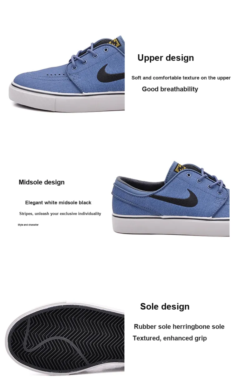 nike SB Stefan Janoski Zoom Кожа Новый Сланец Покрытие Противоскользящий Низкий Топ Скейтборд Кроссовки Мужские Синие