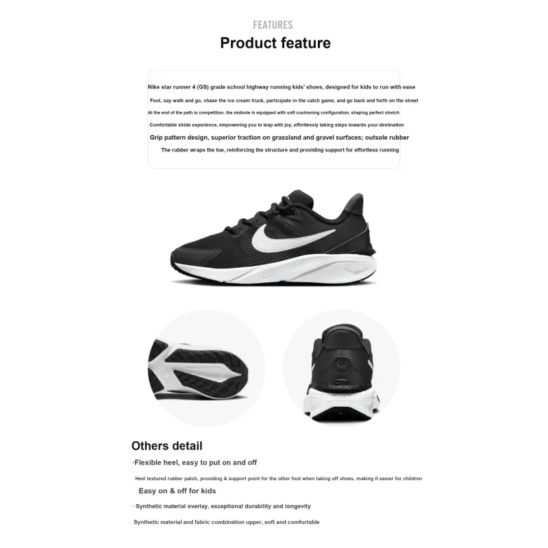 Nike Star Runner 4 Амортизация Устойчивость к истиранию Отскок Дышащий Низкий Топ Детские Беговые Кроссовки Черный Белый