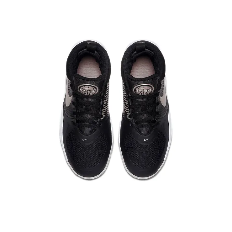 Nike Team Hustle D 9 Устойчивый к истиранию Дышащий Нижнее покрытие Устойчивый к истиранию MID Топ Детские Баскетбольные кроссовки Черный Серебряный