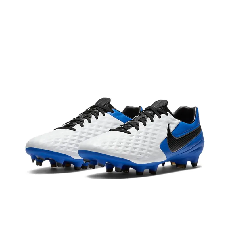 nike Tiempo Legend 8 FG Твердый грунт Природная трава Амортизаторы Уменьшение сцепления Футбольные бутсы Унисекс Синий Белый Черный