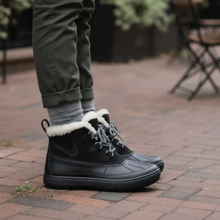 Женские черные ботинки Nike Woodside изготовлены из высококачественной кожи с превосходной текстурой. Их дизайн отличается простотой и элегантностью, они удобны и универсальны, легко сочетаются как с повседневной, так и с деловой одеждой. Модель обладает отличными амортизирующими и износостойкими свойствами, обеспечивая надежную поддержку и защиту стопы, что делает ношение более комфортным во время ходьбы или занятий спортом. Внутреннее пространство просторное, не создает ощущения стесненности. Дизайн голенища плотно прилегает к лодыжке, обеспечивая тепло и подчеркивая линию ног. Классический и стильный внешний вид делает эту модель идеальным выбором для женщин, ценящих качество и моду.