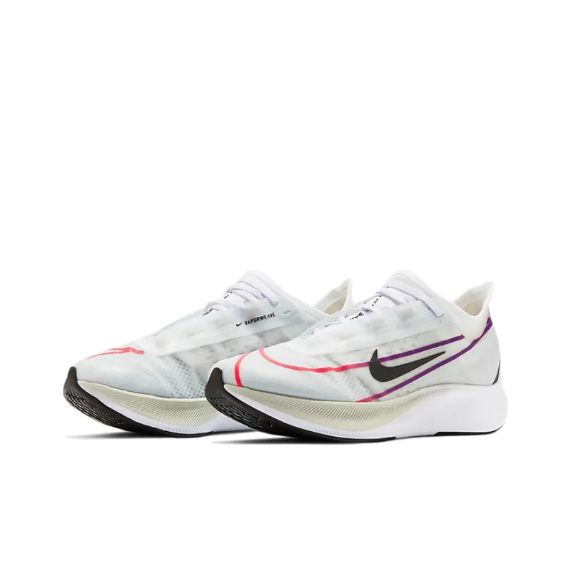 nike Zoom Fly 3 Амортизаторы Shock Slip-resistant Низкий топ Carbon Plate Беговые кроссовки Женские Белый Радужный