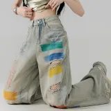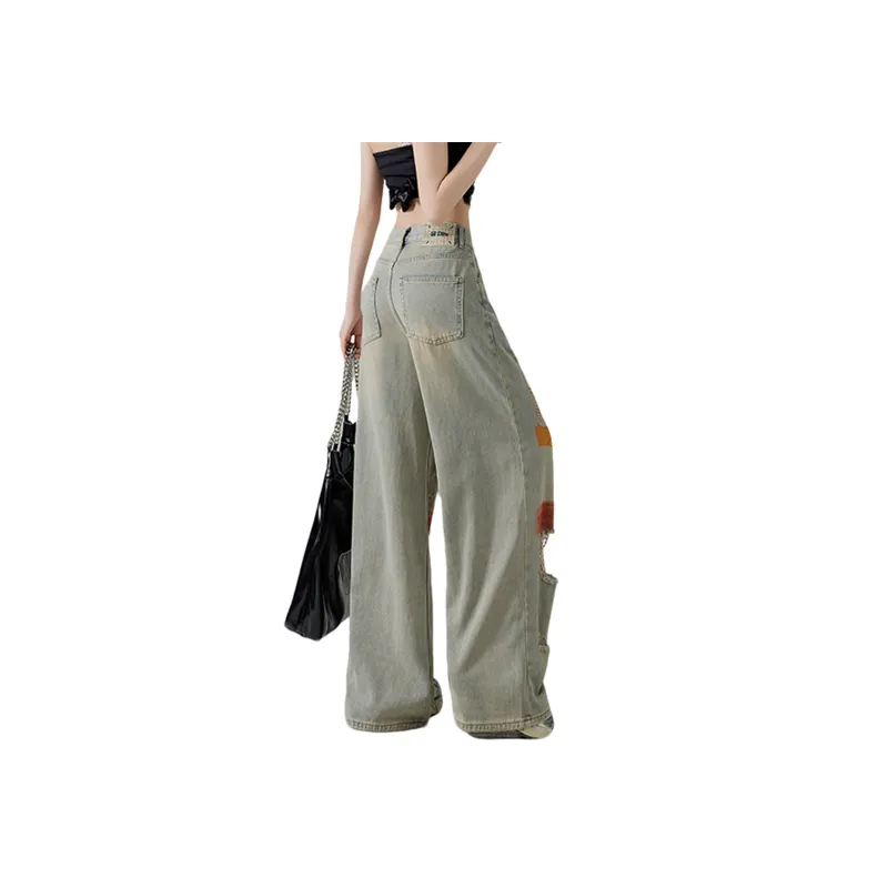 NINGCAIYUER Scrap Blue Women's Jeans NINGCAIYUER Scrap Синий Женские Джинсы