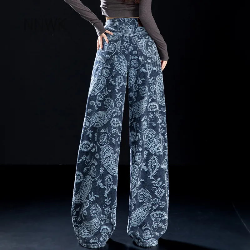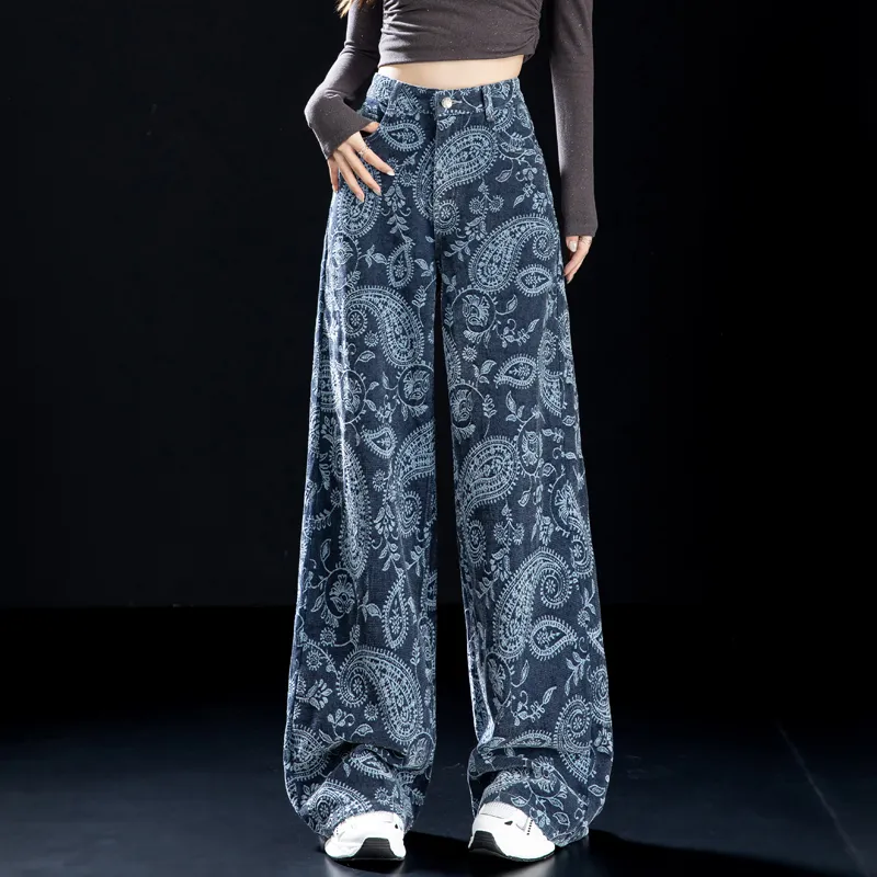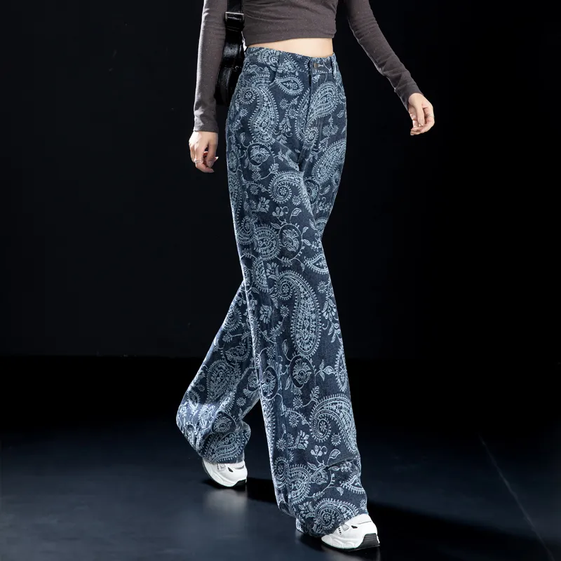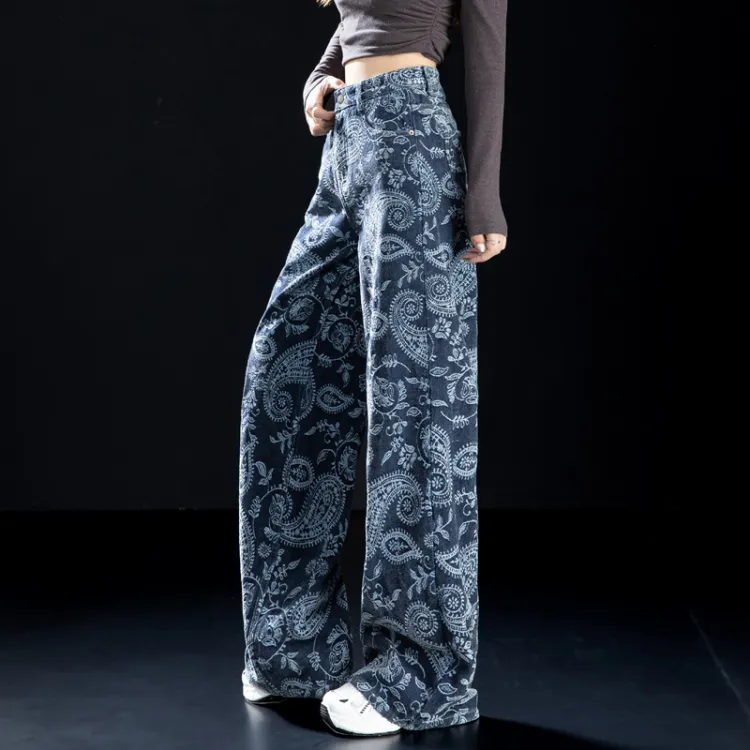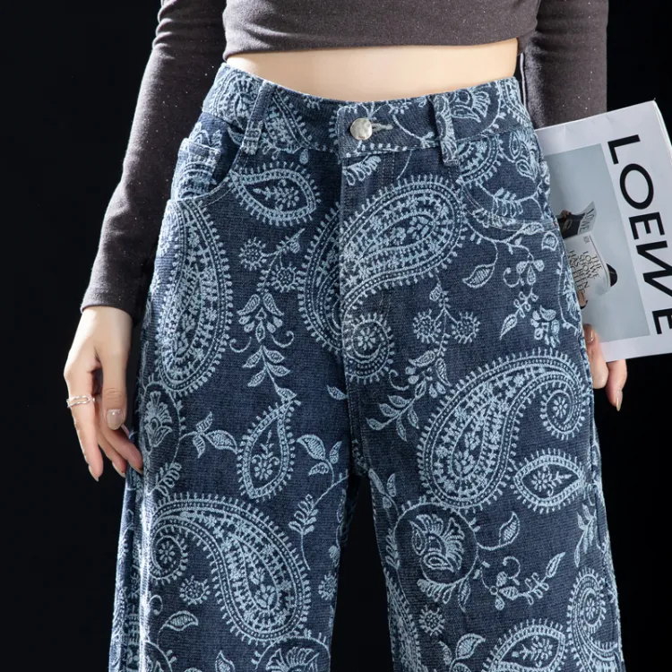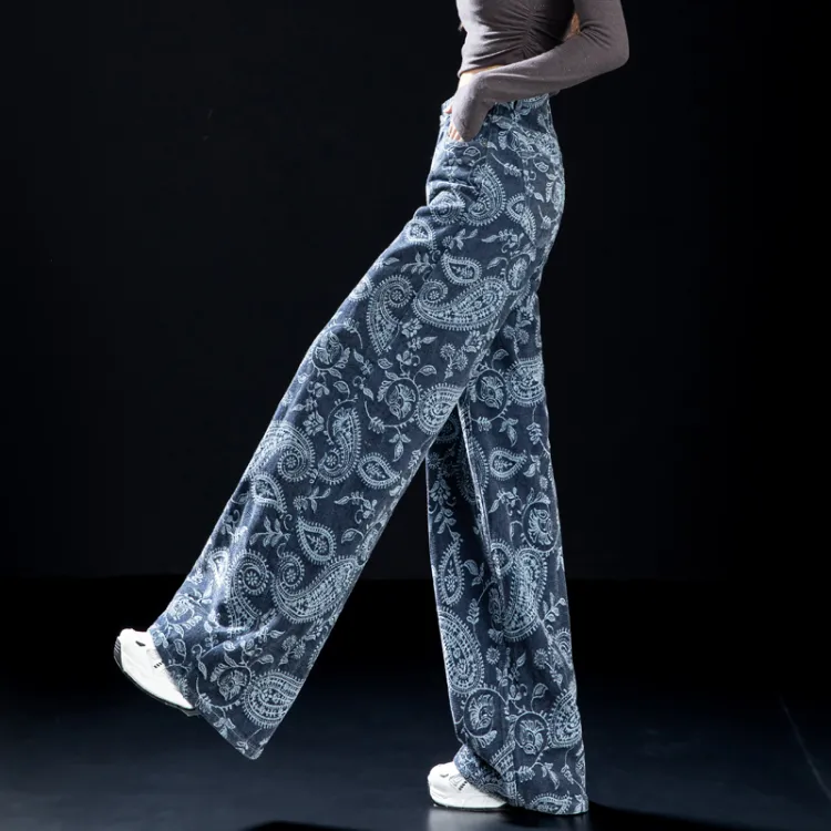 NINIUWOKU Синий Пейсли Женские Джинсы