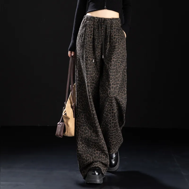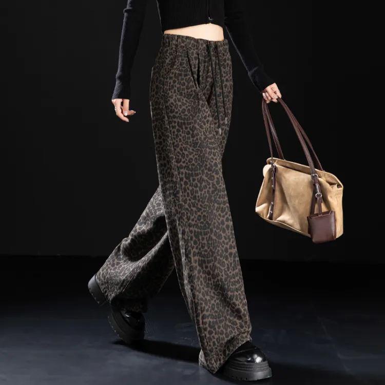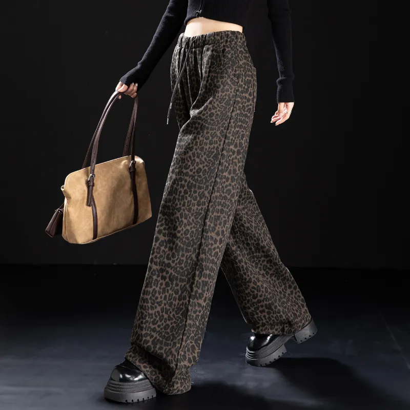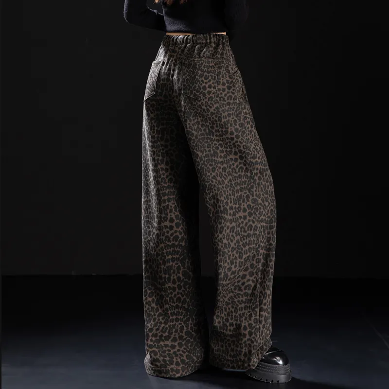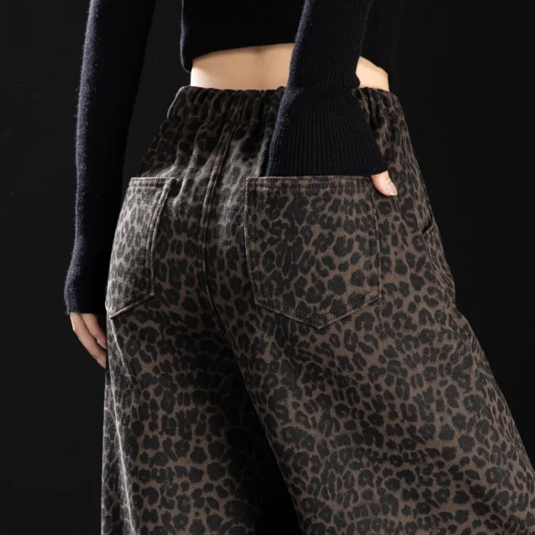 NINIUWOKU Кофейный леопард с принтом женские джинсы