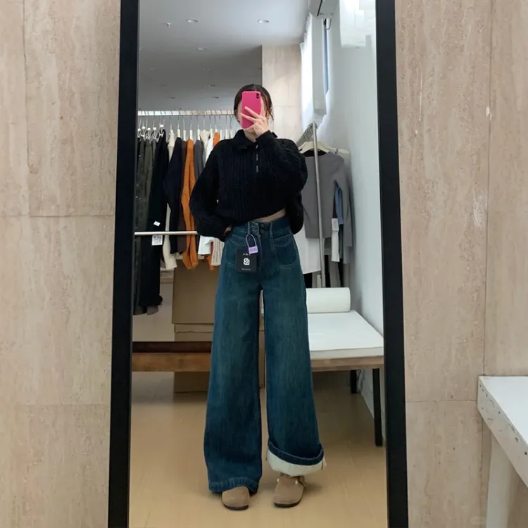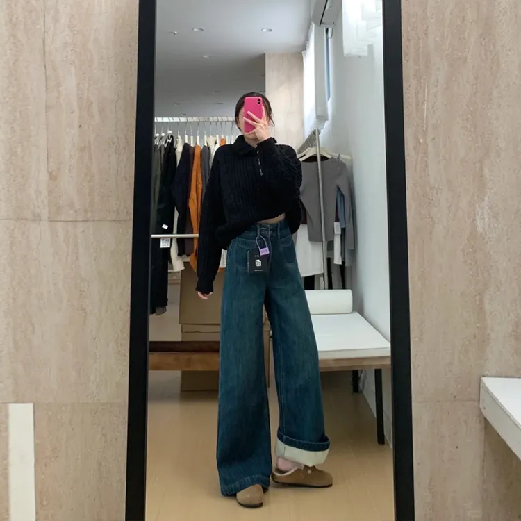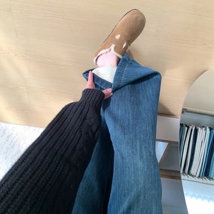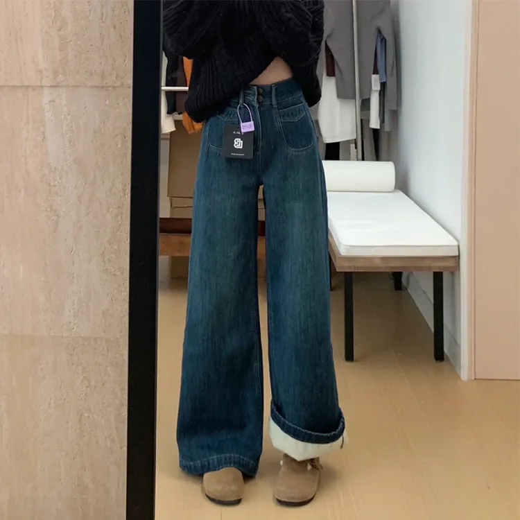 Винтажные синие штаны длиной до щиколотки, толстый флис