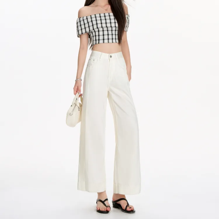 NIUXIAOMO Экрю Женские Джинсы