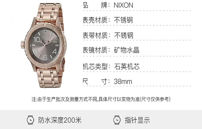 NIXON Наручные часы Кварцевый механизм Нержавеющая сталь Ремешок 38 мм Коричневый циферблат Часы Мужские