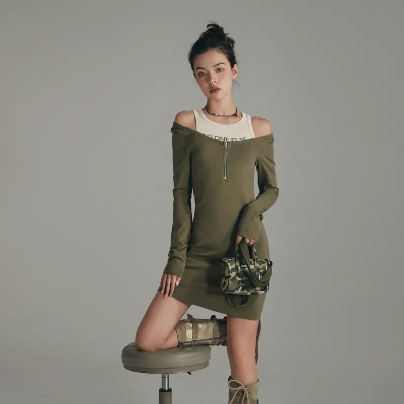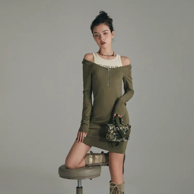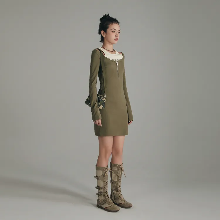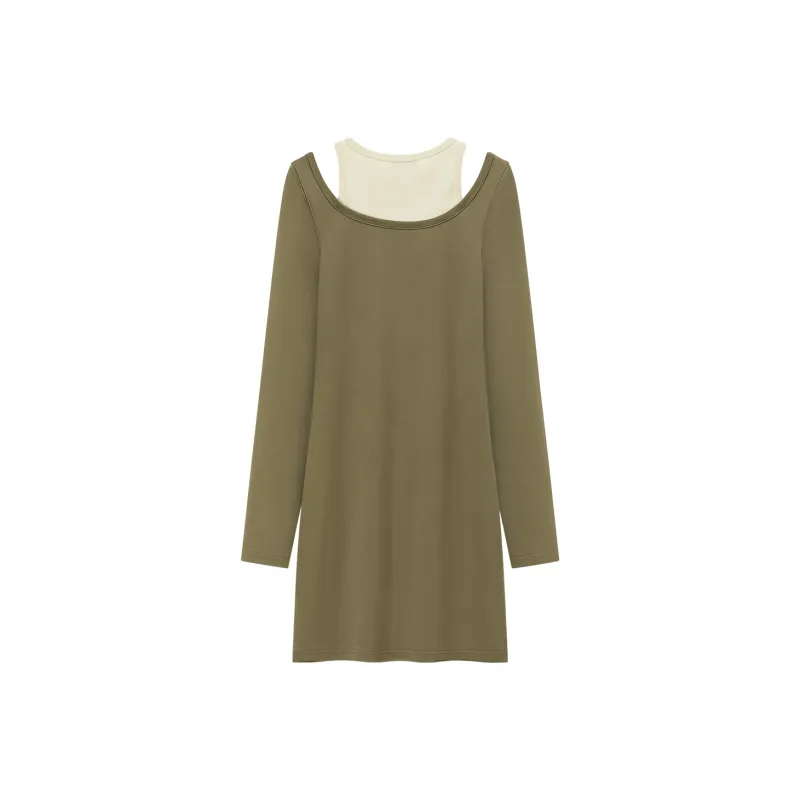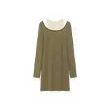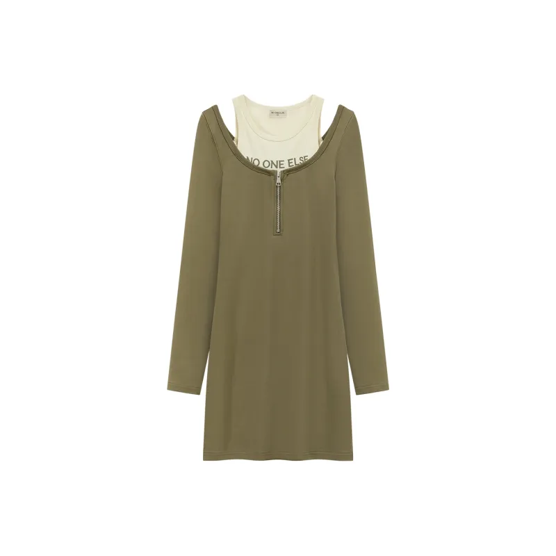 NO ONE ELSE Горчичный зеленый Женские Длинные Платья с Рукавами