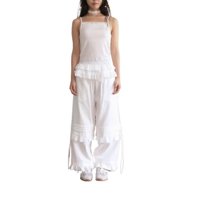 NOFFICIALNOFFICE Кружево Tuck String Брюки Повседневные Брюки Женские