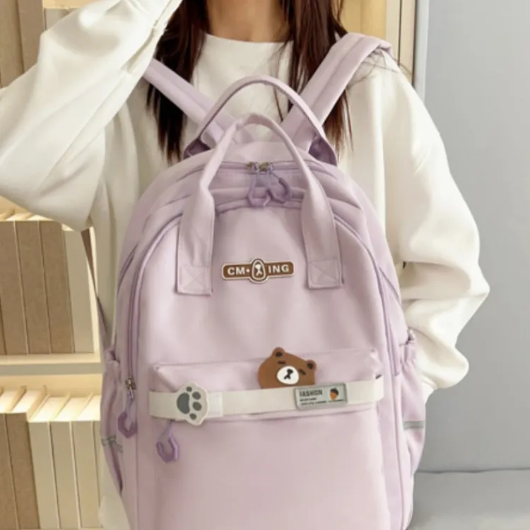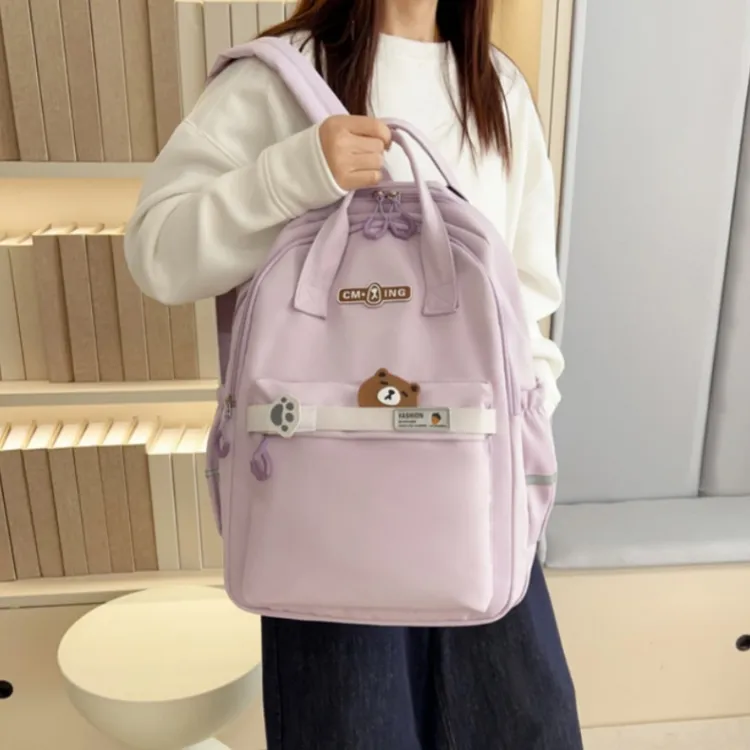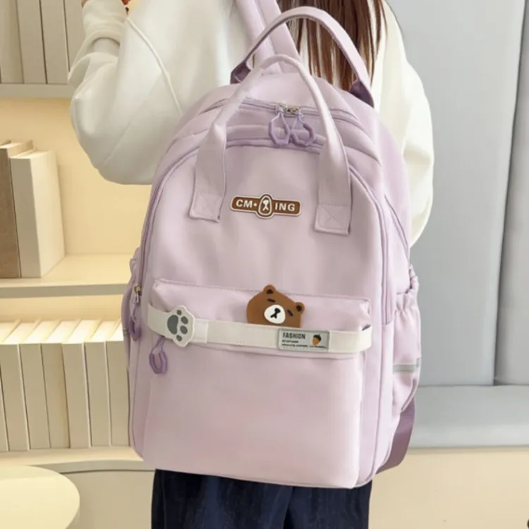 NOMK Нейлон Рюкзак Стандартный Женский Черный Розовый Фиолетовый Светло-Зеленый Светло-Синий