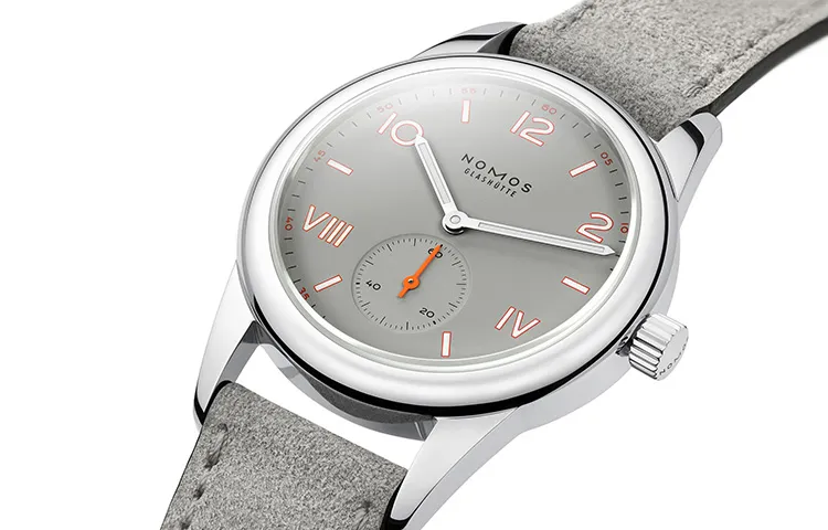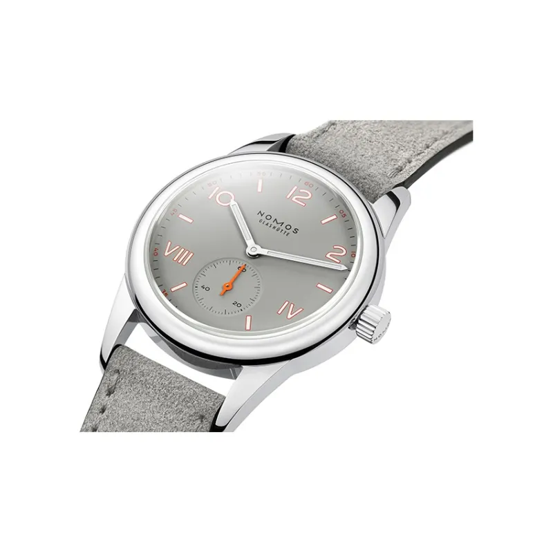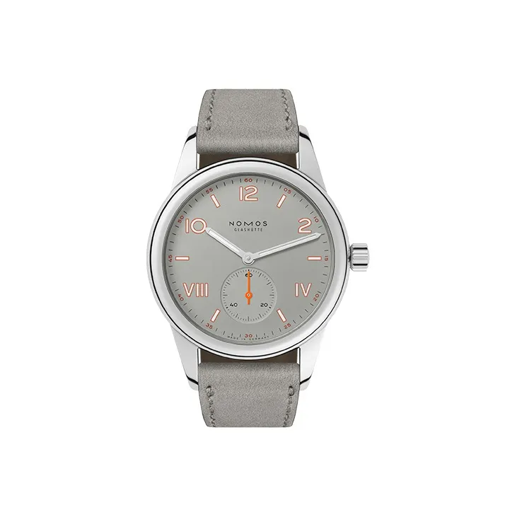 NOMOS Club Campus Механические Ручные Заряжаемые Часы Унисекс Серый Циферблат Корпус из Нержавеющей Стали Ремешок из Натуральной Кожи