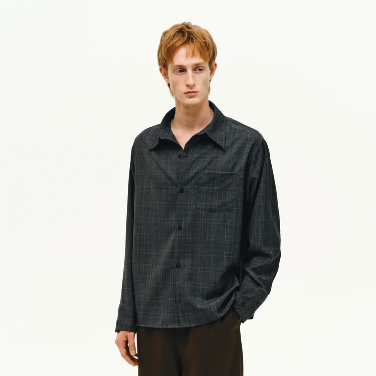 NONRADICAL Серый Синий Клетка Унисекс Рубашки