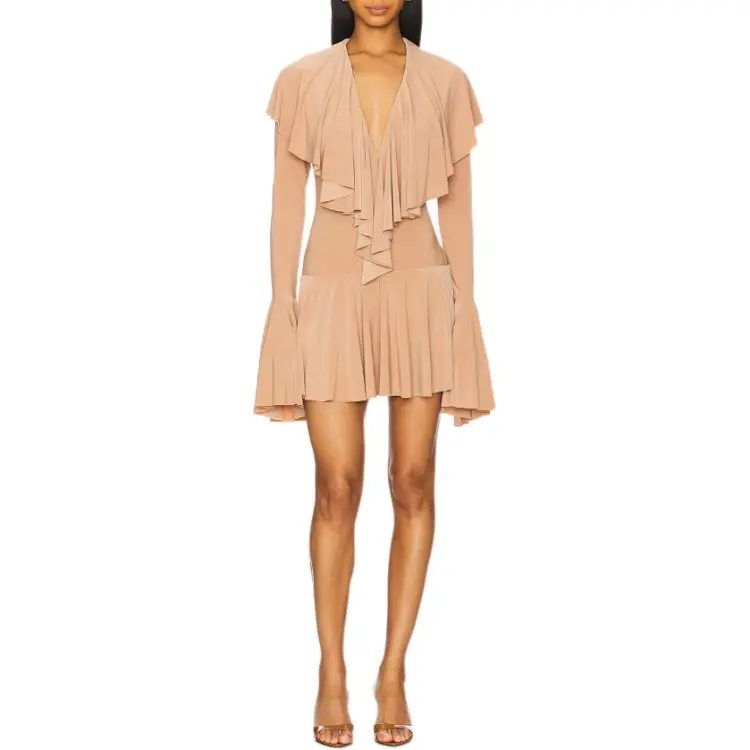 NORMA KAMALI Длинное платье с длинными рукавами женское бежевый
