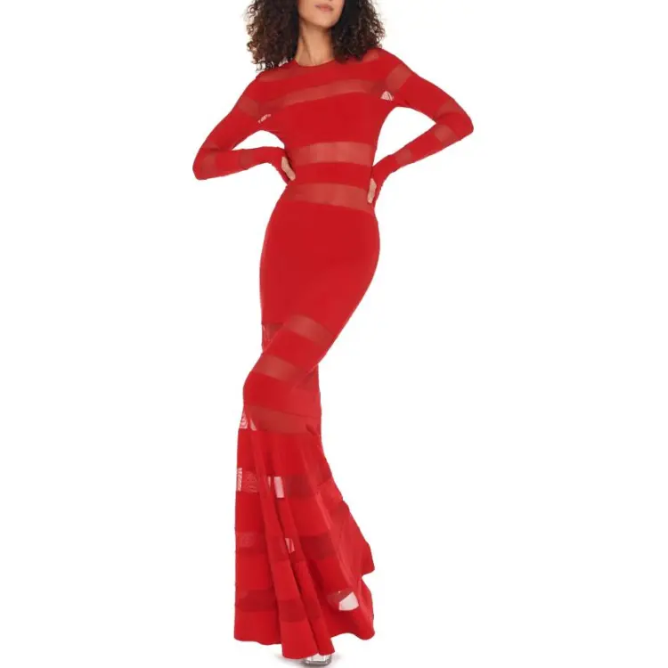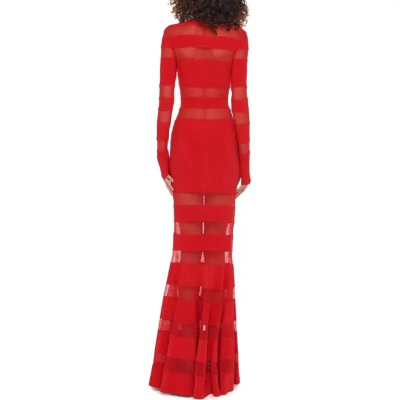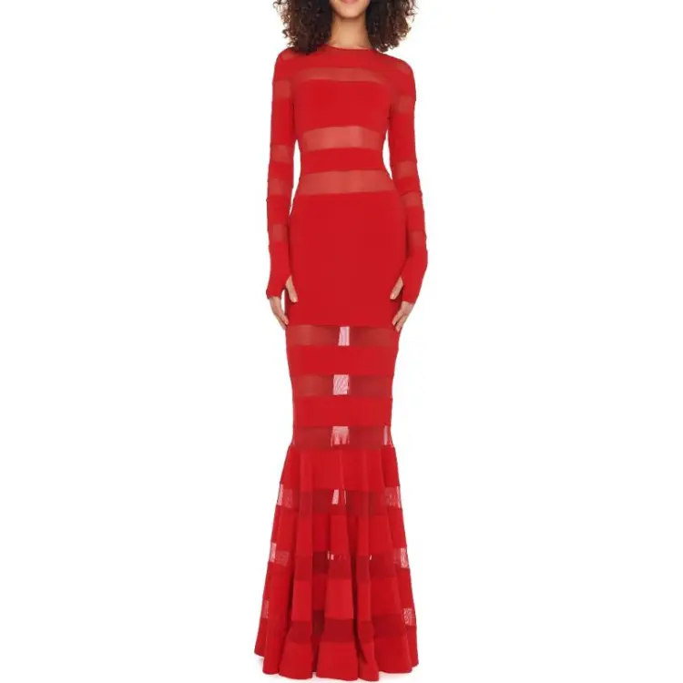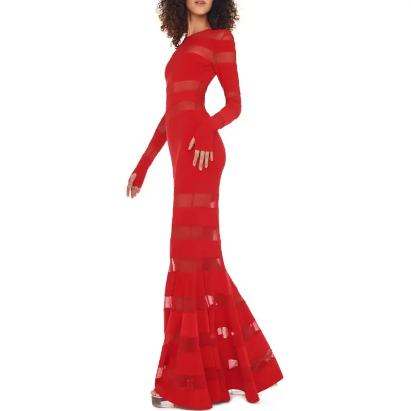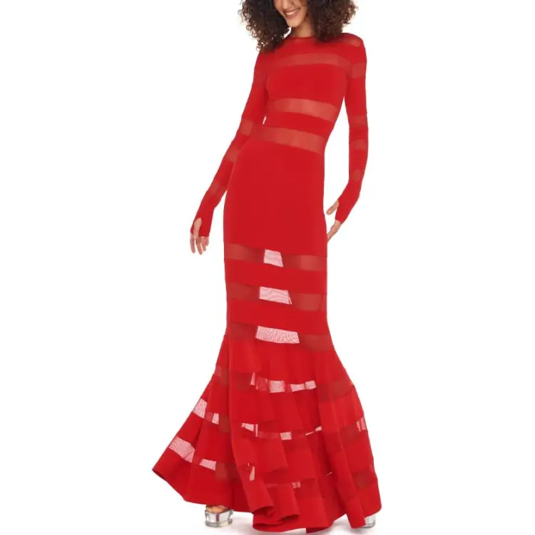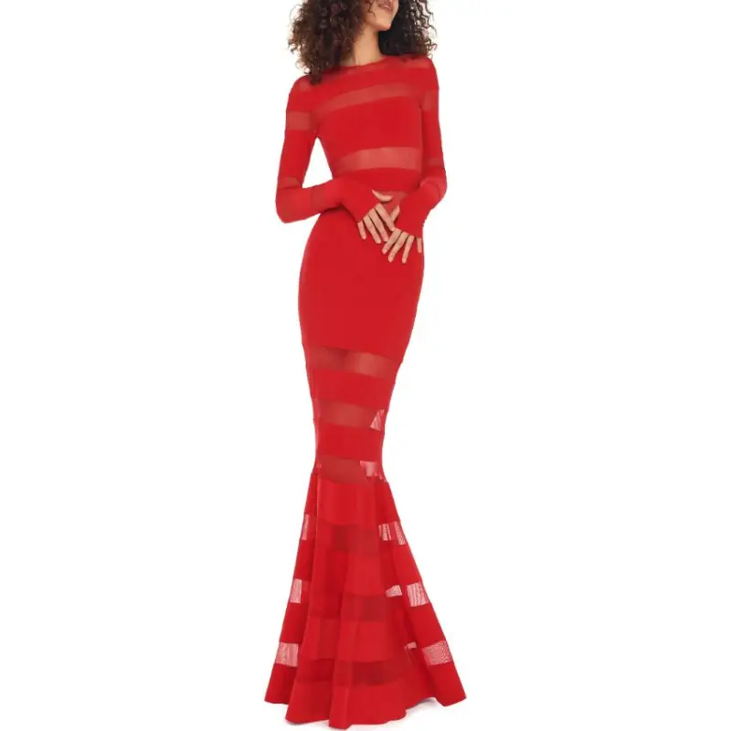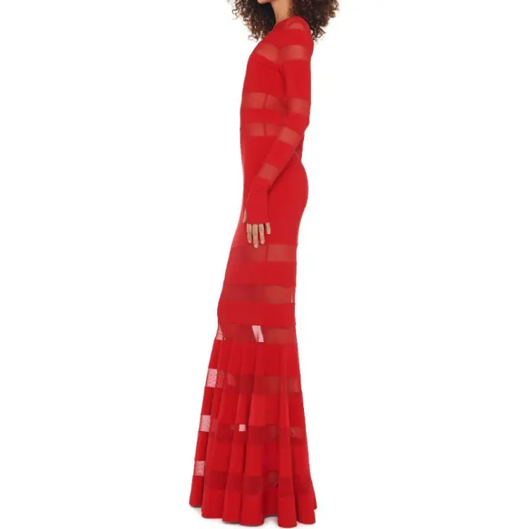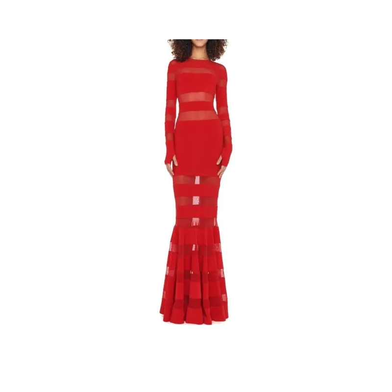 NORMA KAMALI Длинное платье с длинными рукавами женское красное