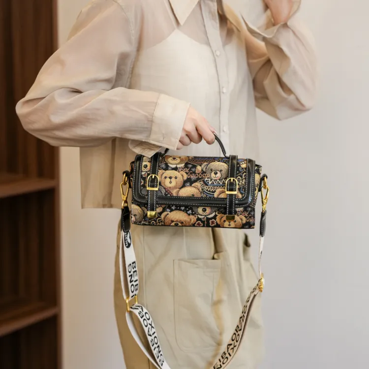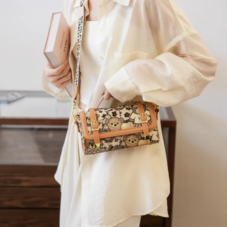 North Pack Canvas Bag Маленькая квадратная сумка Сумка через плечо Сумка на плечо Женская Полночный черный Бежевый абрикос