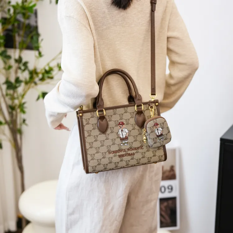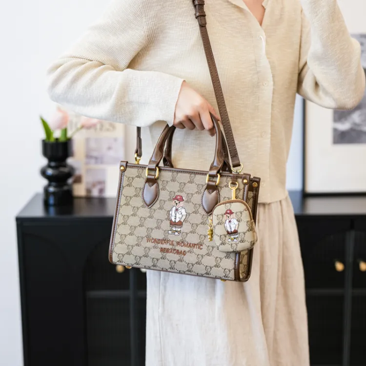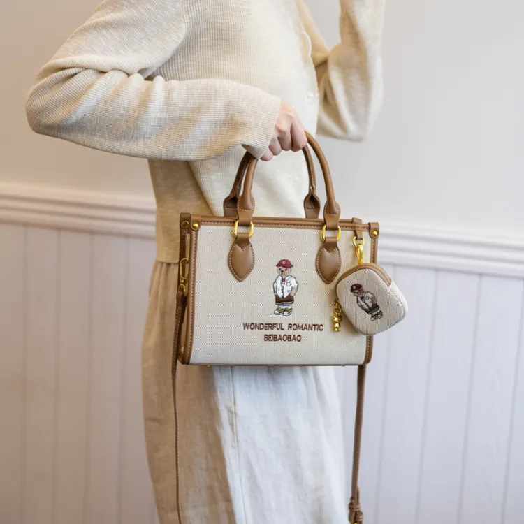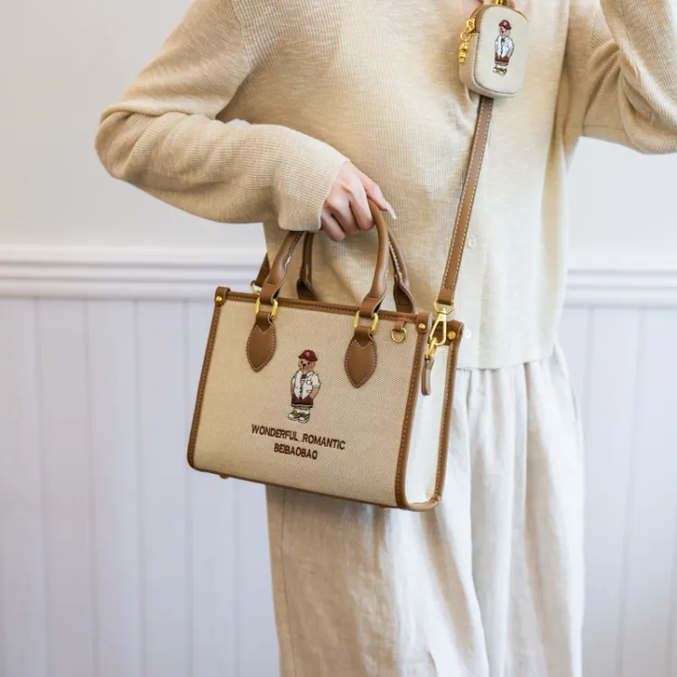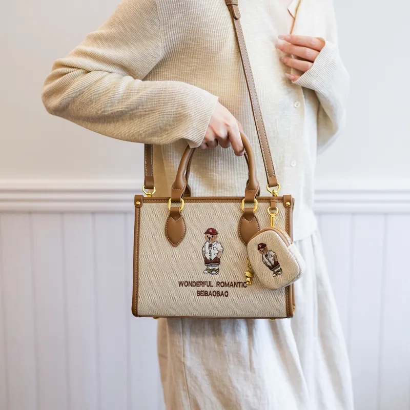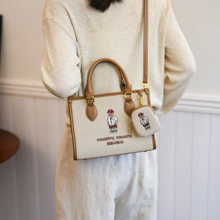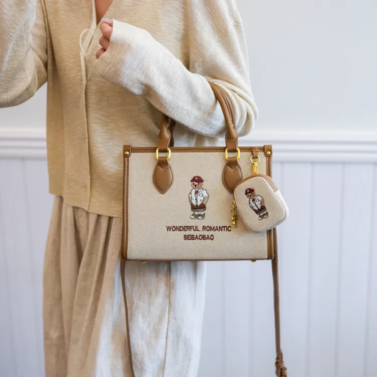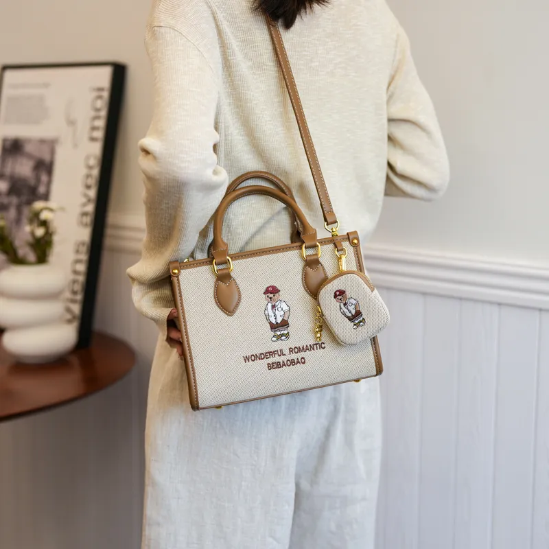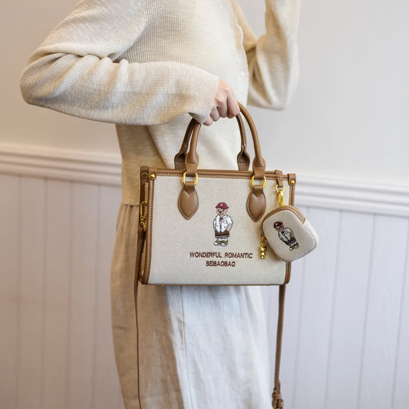 North Pack ПУ (полиуретан) Сшитый Холст Сумка через плечо Сумка Средняя Женская Экрю Хаки