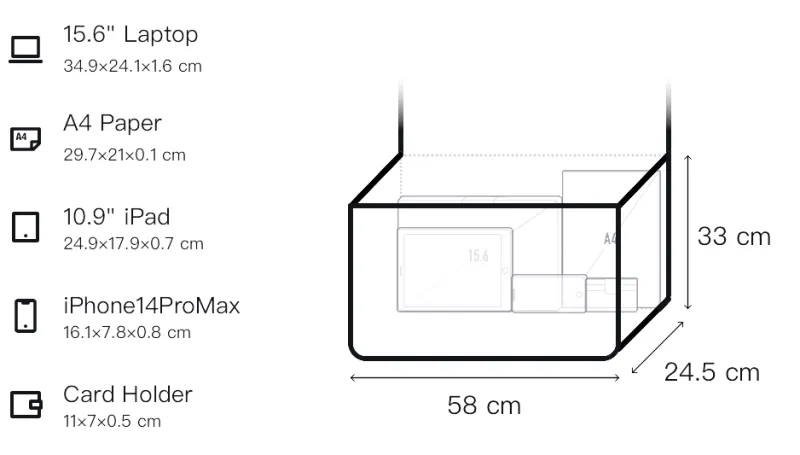Д58*Ш24,5*В33см