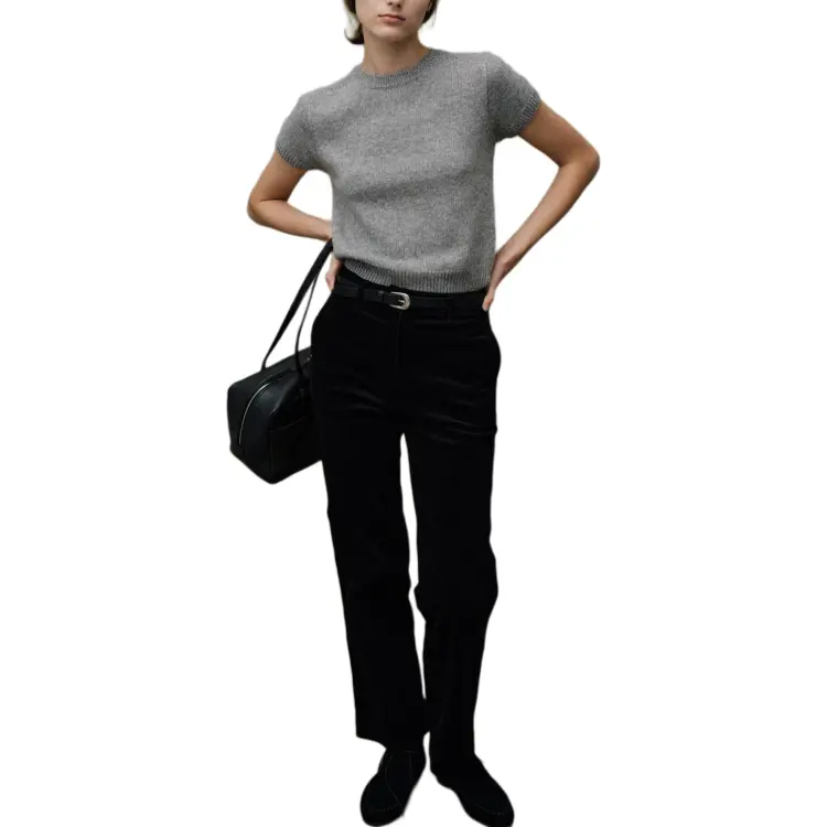 NOTHING WRITTEN Puno Короткий рукав Вязаный свитер Женский Серый Серый