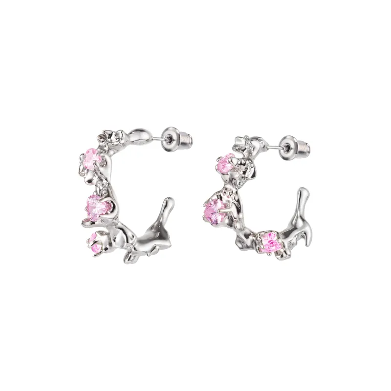 NothingButMini Серьги с цирконием медное покрытие белый золото женские