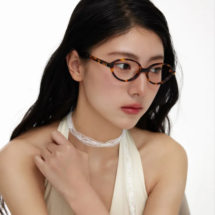 NOVA BEBEE Пластина And Металл Овал Оправы для очков Женские Коричневый Леопардовый принт