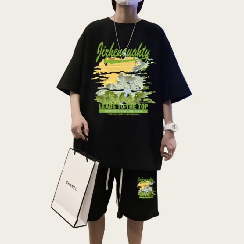 NRXX Мужская одежда Лето Короткий рукав Casual Sports Круглый вырез Модный тренд Комплекты Тонкий Нишевый Дизайн Мужской