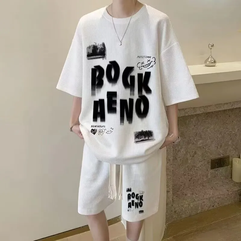 NRXX Мужская одежда с принтом круглый вырез свободный крой модный нишевый дизайн набор летний с коротким рукавом для студентов и подростков