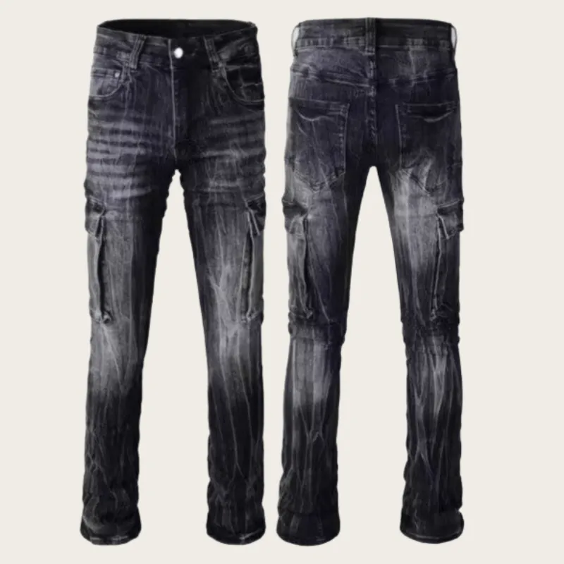NRXX Мужская одежда American Luxury Streetwear Bootcut MULTI Pocket Slim Fit Elastic Jeans Teenagers Students Men's