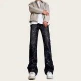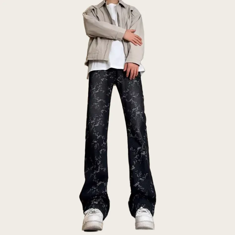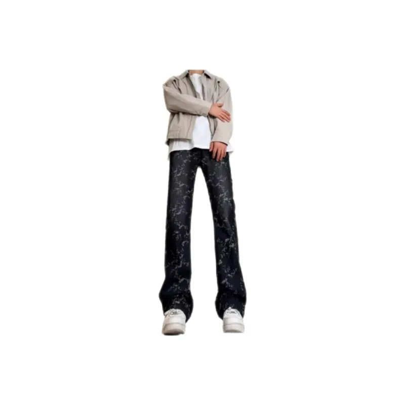 NRXX Мужская одежда Модный American Luxury Streetwear Vibe Жаккард Джинсы Washed Straight Fit Casual Men's