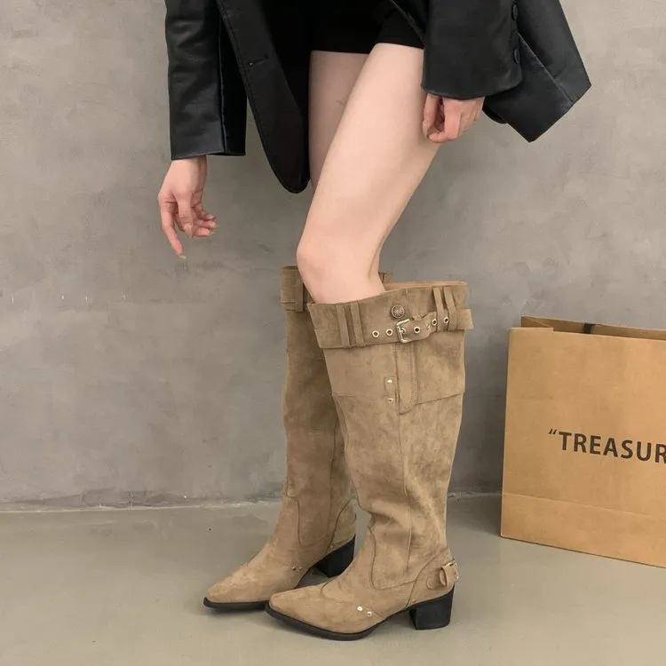 NTOZE Женские высокие сапоги цвета хаки