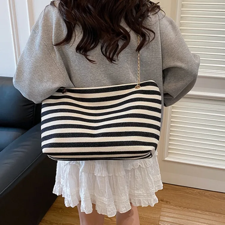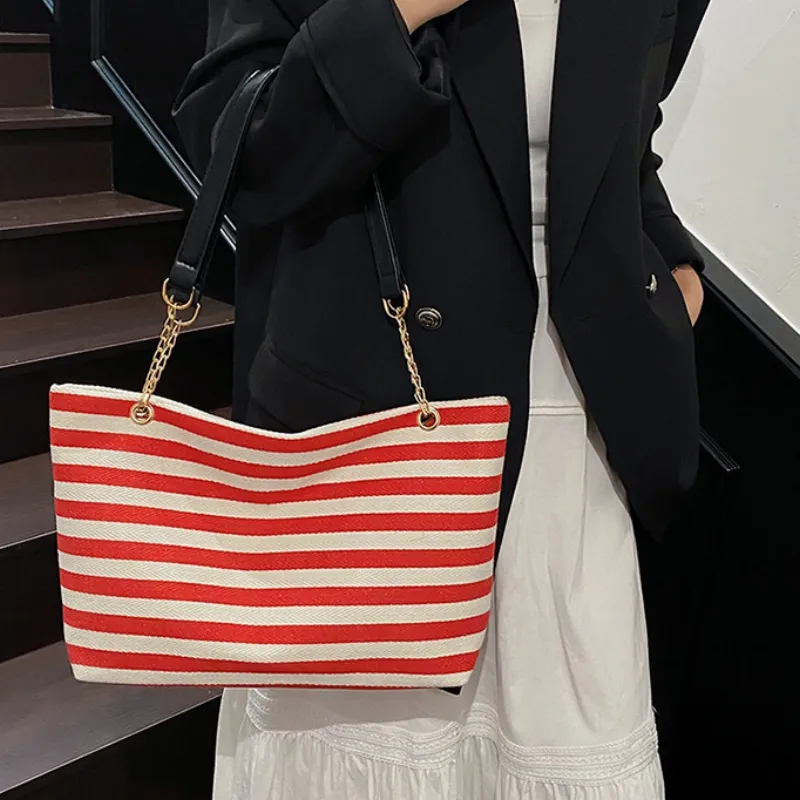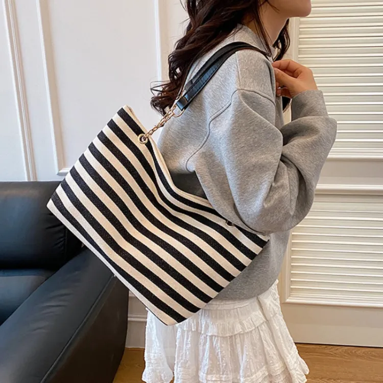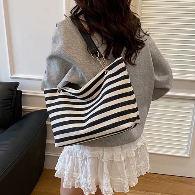 NX DOUGHNUT Трикотажная ткань Большая емкость Полосы Цветовой блок Сумка через плечо Сумка на плечо Стандартная Женская Многоцветная