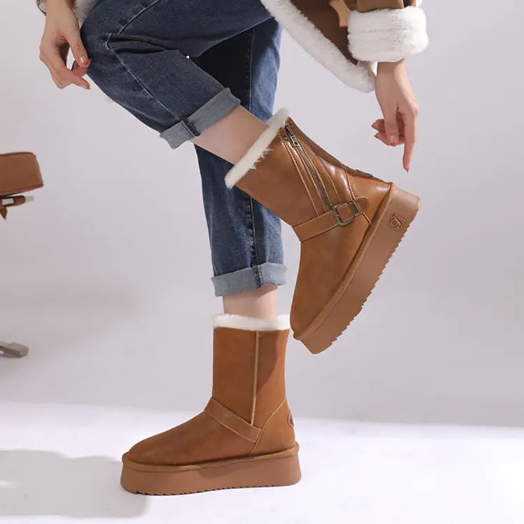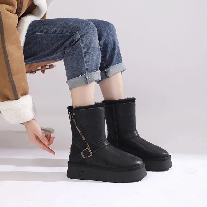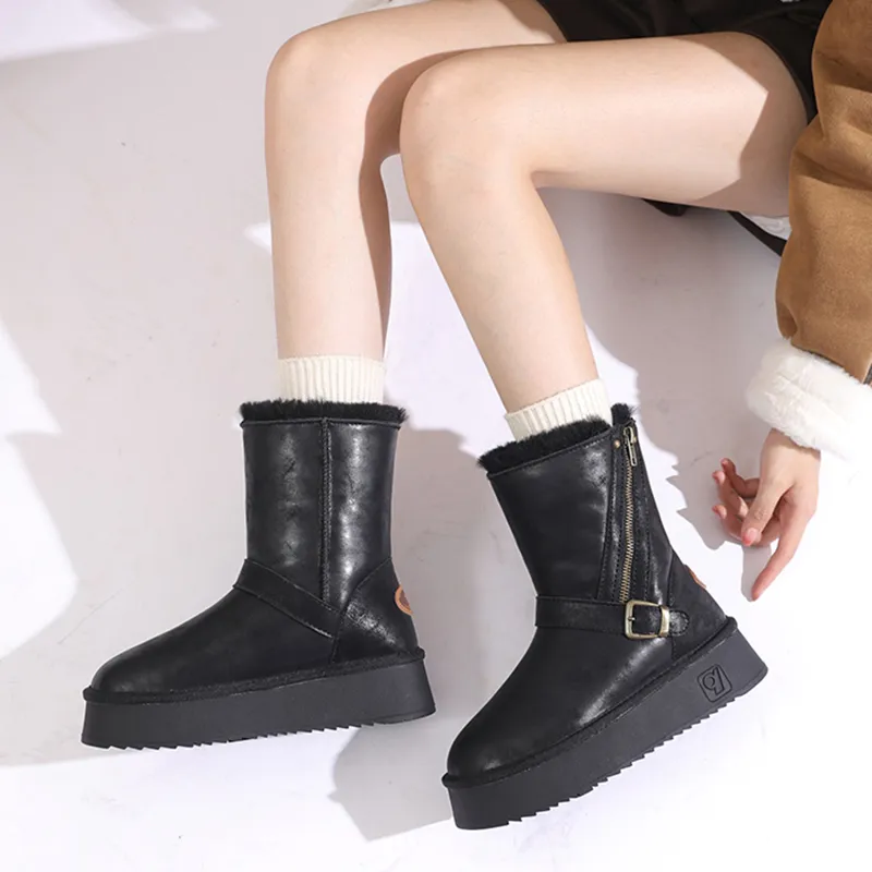 O.L Утепленная обувь Водонепроницаемая Устойчивая к истиранию Увеличивающая высоту Противоскользящая Зимняя обувь Женская
