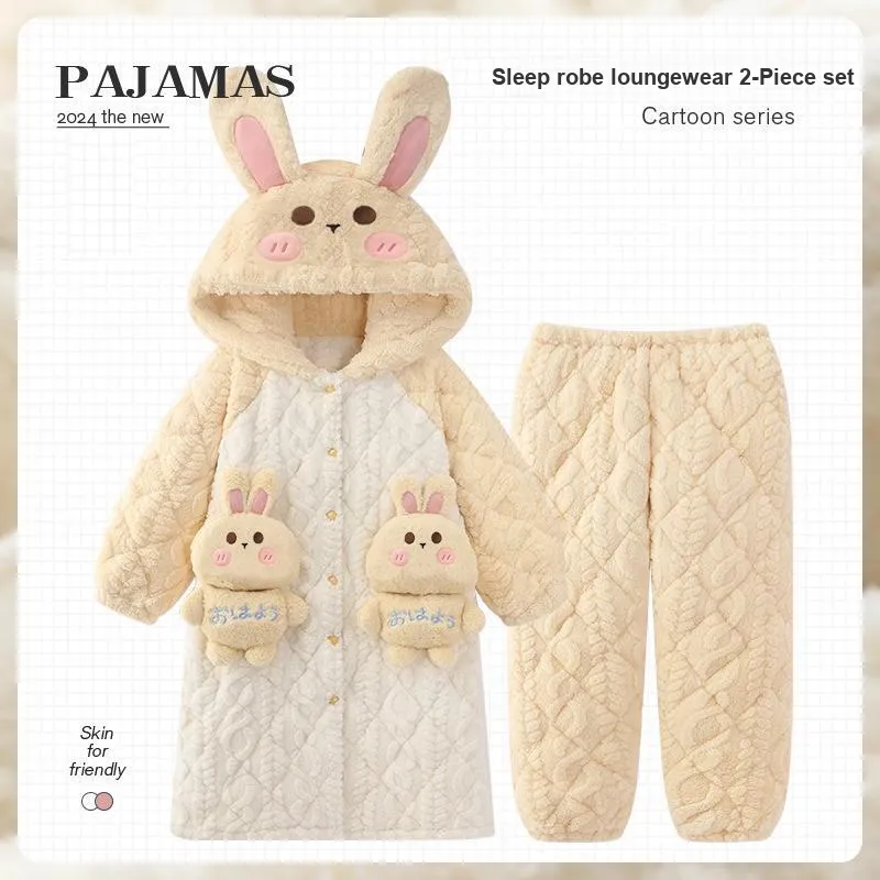 O'MESIK Желтый [Утепленная рубашка + утепленные брюки] Женские пижамные комплекты