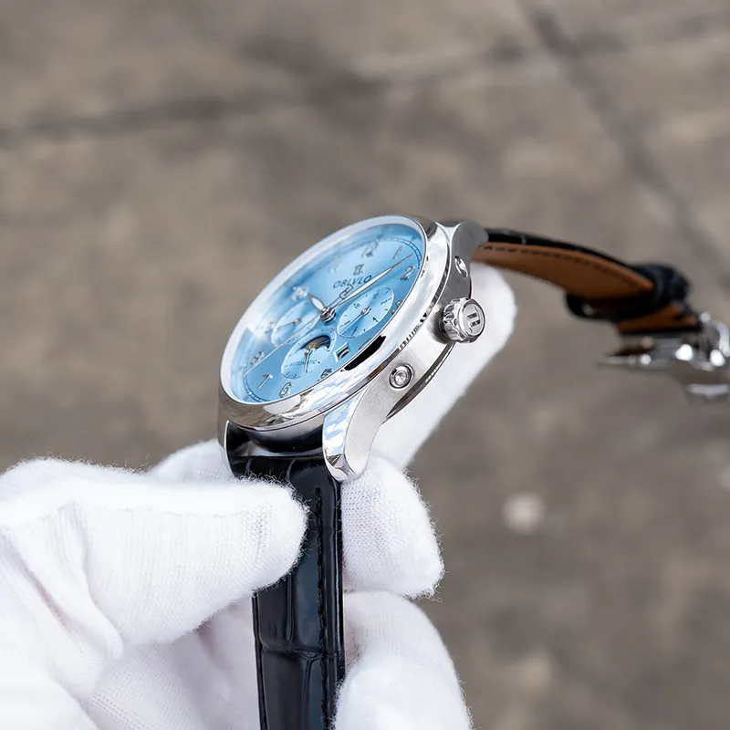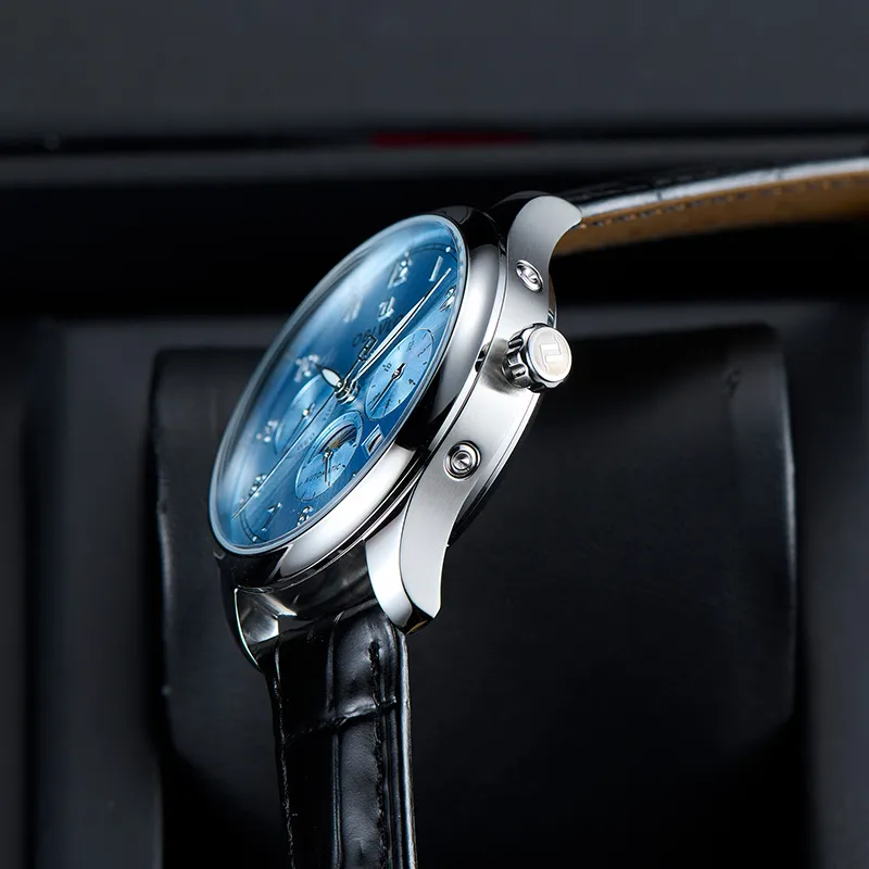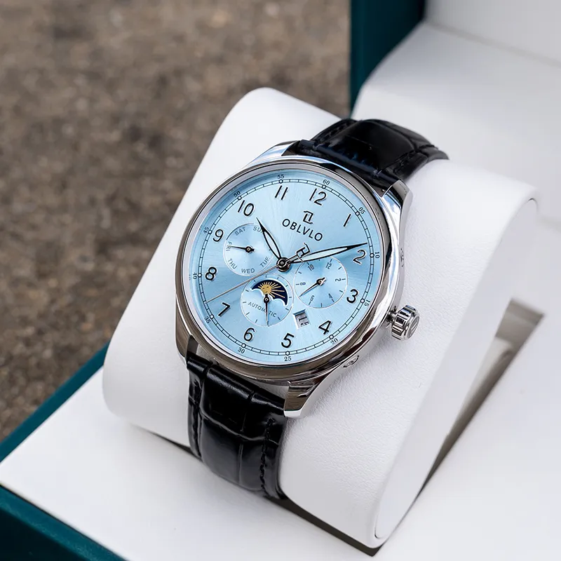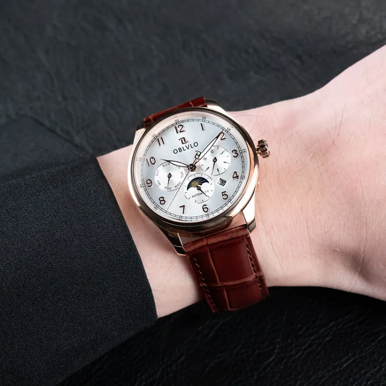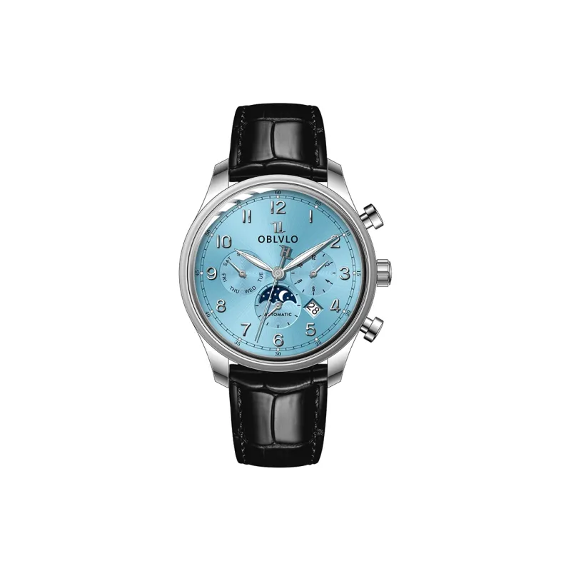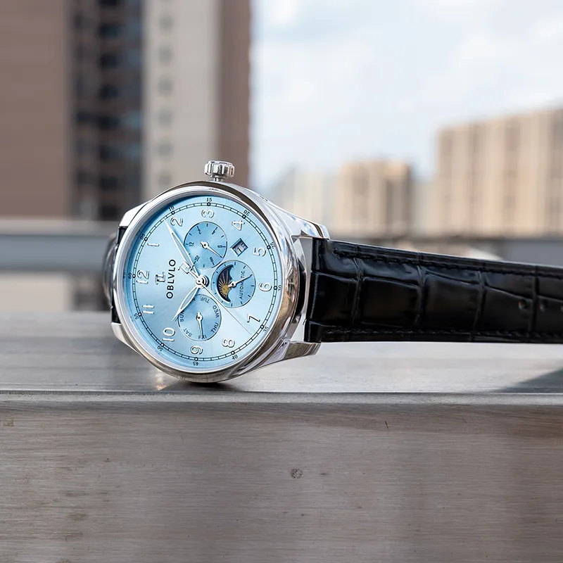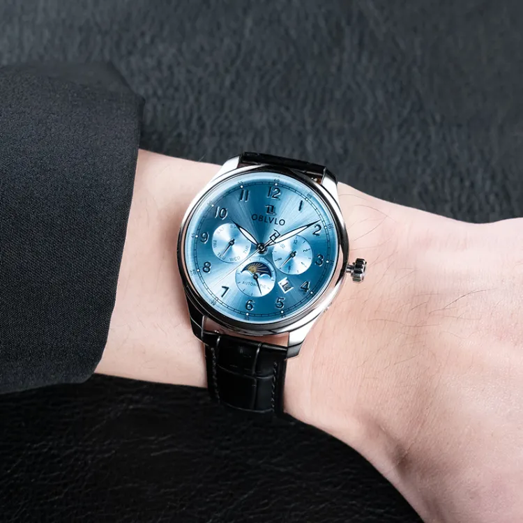 OBLVLO Автоматический механический механизм натуральная кожа ремень часы для мужчин многоцветный циферблат
