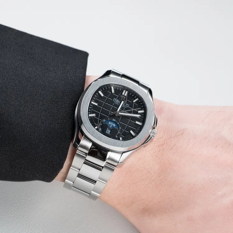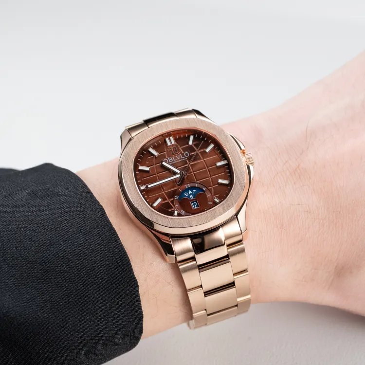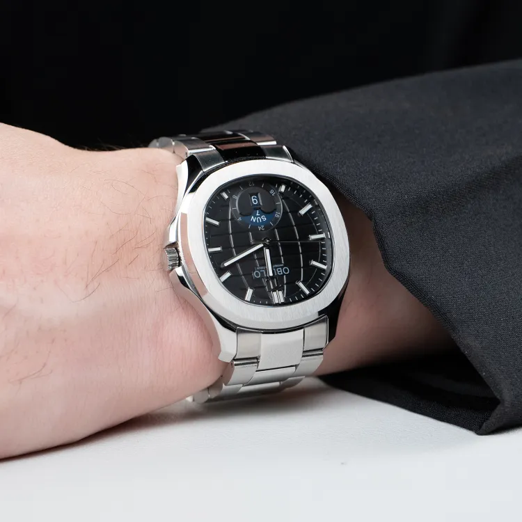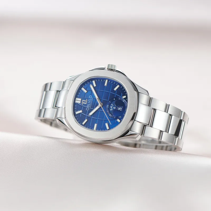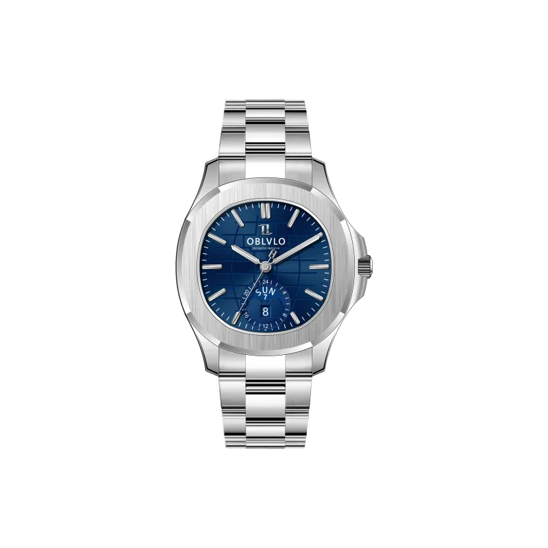 OBLVLO Автоматический механический механизм ремешок из нержавеющей стали мужские часы белый циферблат