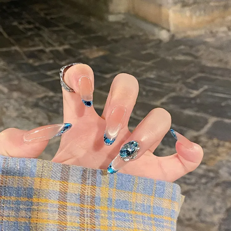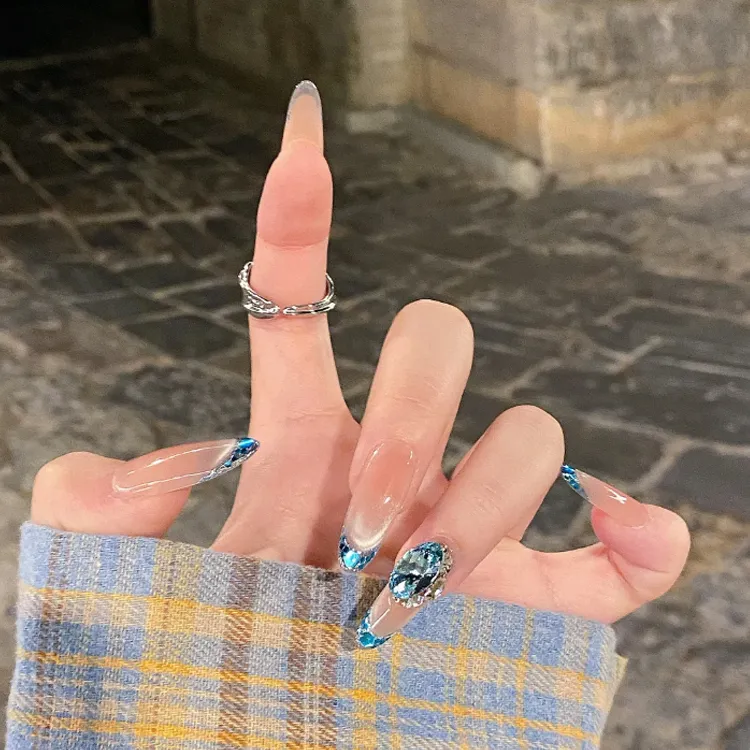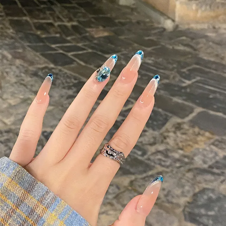 OCHIEN Премиум Feel Роскошь Французский Кончик пальца Синий False Nail MID Длина (размер в длину) Миндаль
