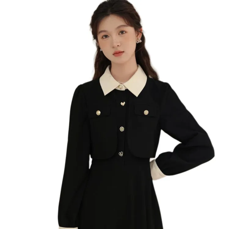 Oddgoods Длинное платье с длинными рукавами женское черное